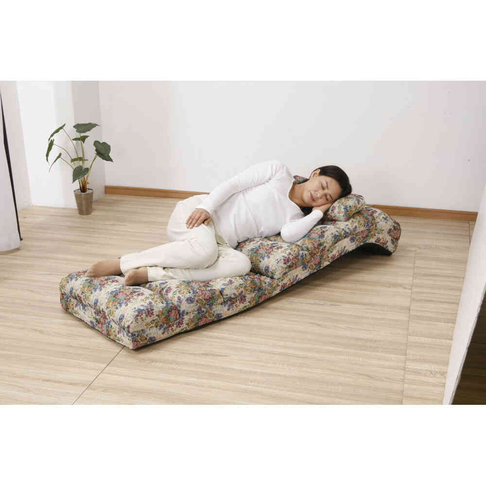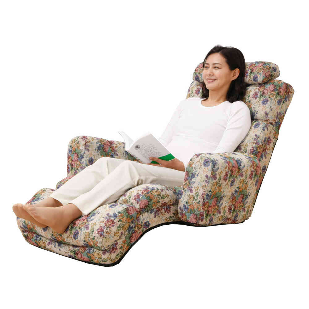 ふかふか、モコモコ感が体をゆっくり包みます。 ●背、膝部の2箇所がリクライニング式なのでお好みの姿勢でリラックス。 ●お昼寝する時やテレビを見ながら、ごろ寝する時にちょうどいいサイズ! ●うれしい枕付き!枕は腰当てとして使用できます。 ●お昼寝OK! ●肘ありは肘が取り外しできます。 ●膝・背14段階リクライニング ●お客様組立式