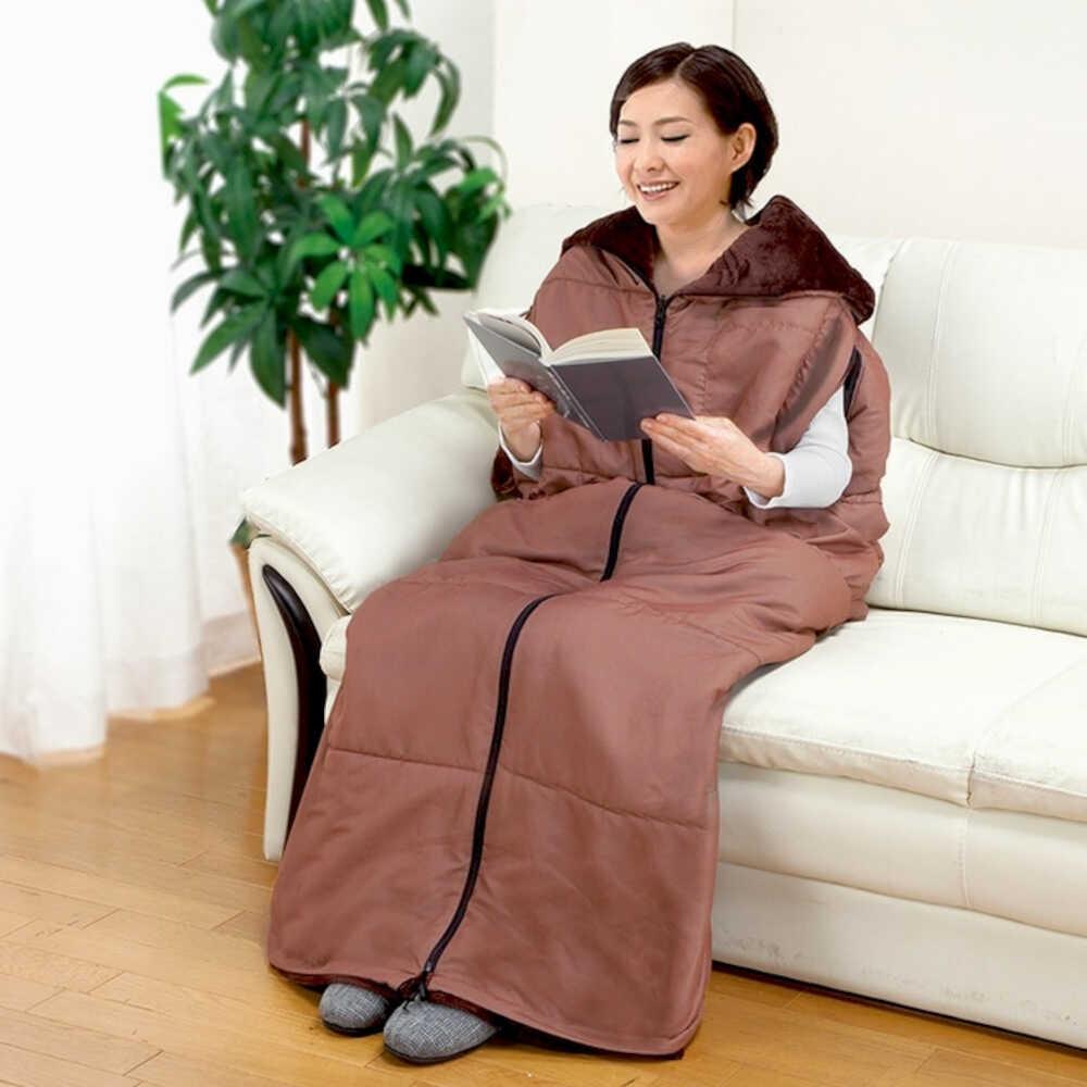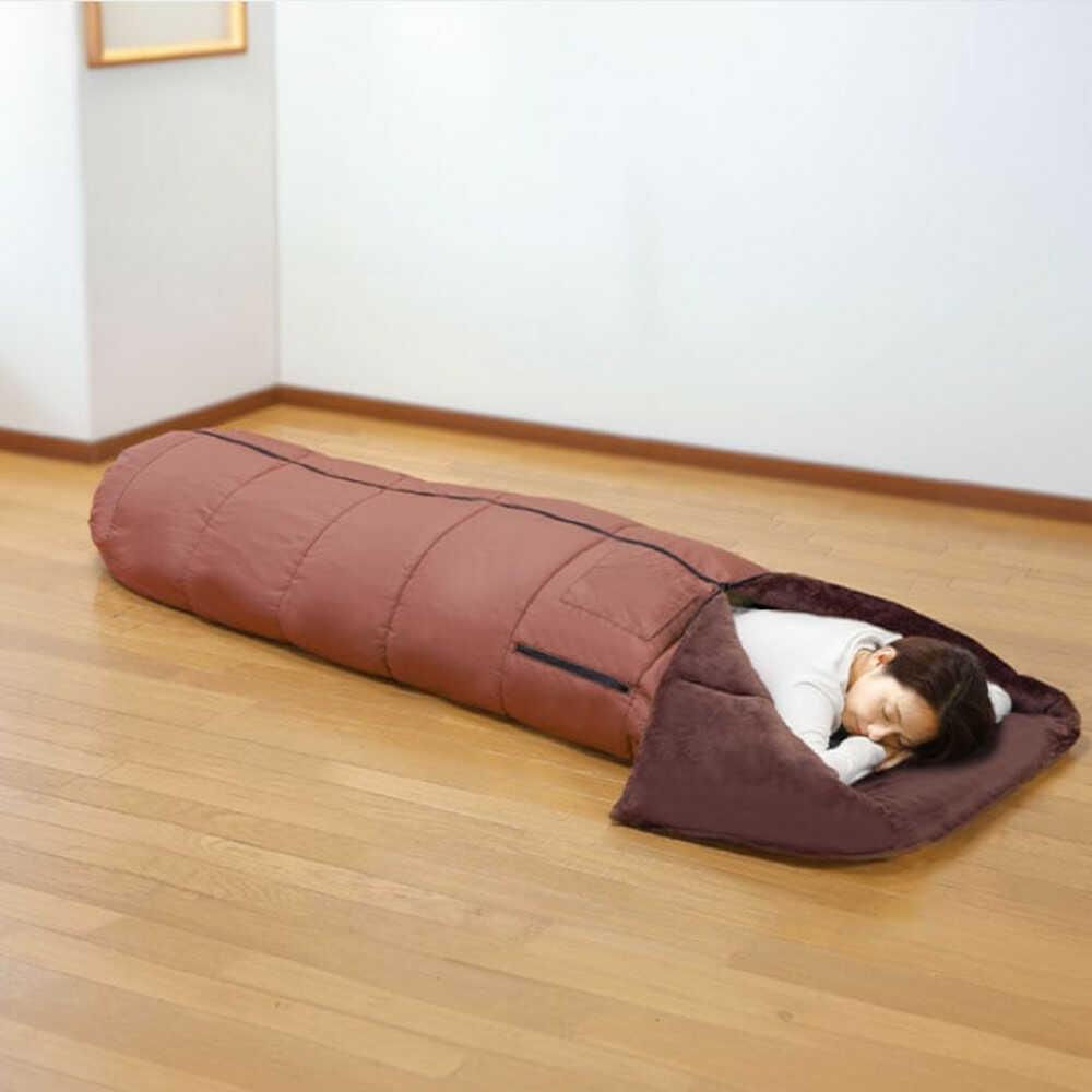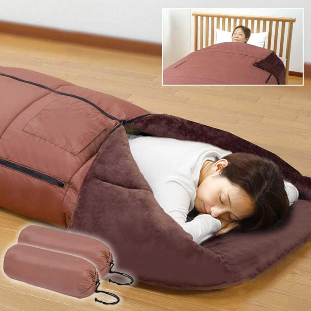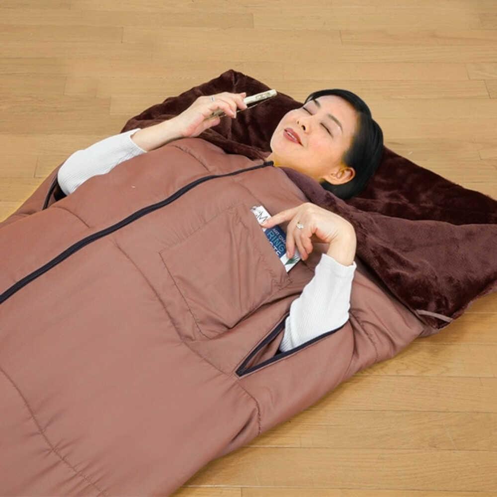シュラフ 寝袋タイプ 掛布団 着る毛布 ポケット付き ブラウン 撥水加工 軽量 暖か 冬用 車中泊 防災用 防災グッズ 防災寝袋 アウトドア キャンプ 丸洗い可能 収納袋付き