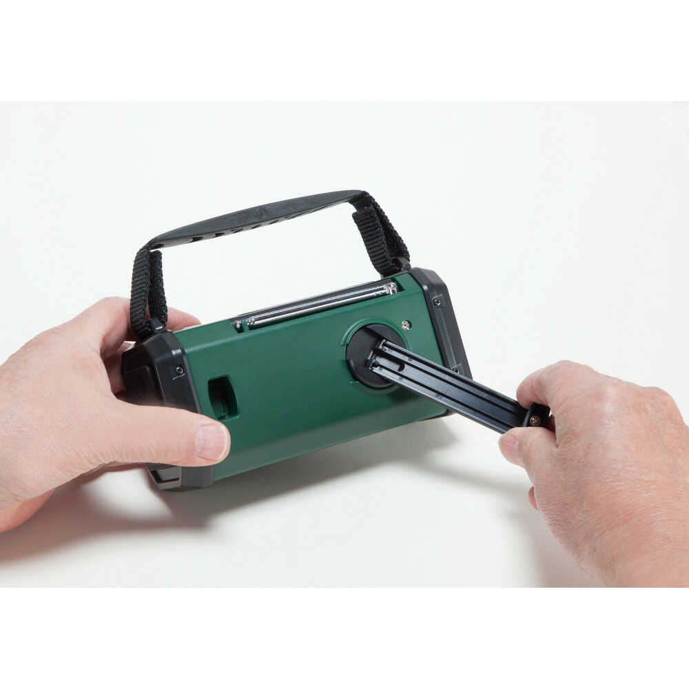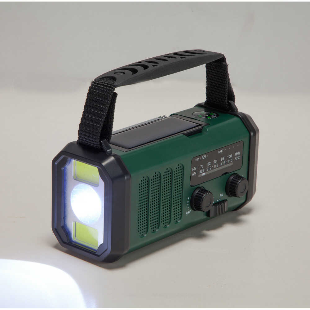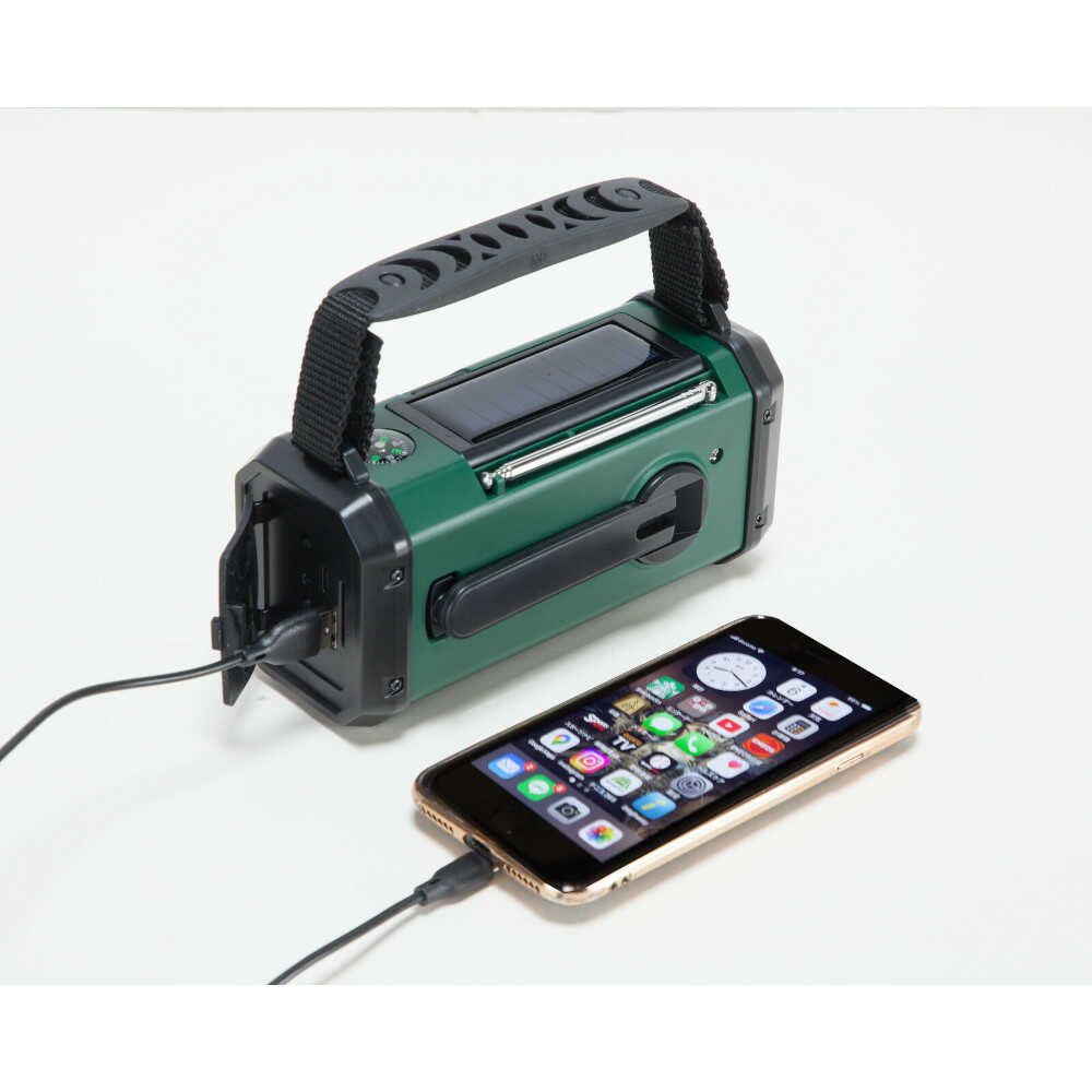 コンパクトながら大容量 ●充電方法が3種類から選択可能(ソーラー充電、USB充電、手回し充電) ●大容量バッテリー10000mAh(携帯電話等を充電可能) ●FM/AMラジオ対応(FM76~108MHz/AM522~1710KHz) ●ライトは3種類から選択可能(1:スポットライト、2:広角ライト、3:12同時点灯) ●救助や防犯用に有効なSOSサイレンを搭載。 ●コンパス(方位磁石)付き ●読書灯付き ●取り外しできる取っ手付き ●6ヶ月間保証書付き