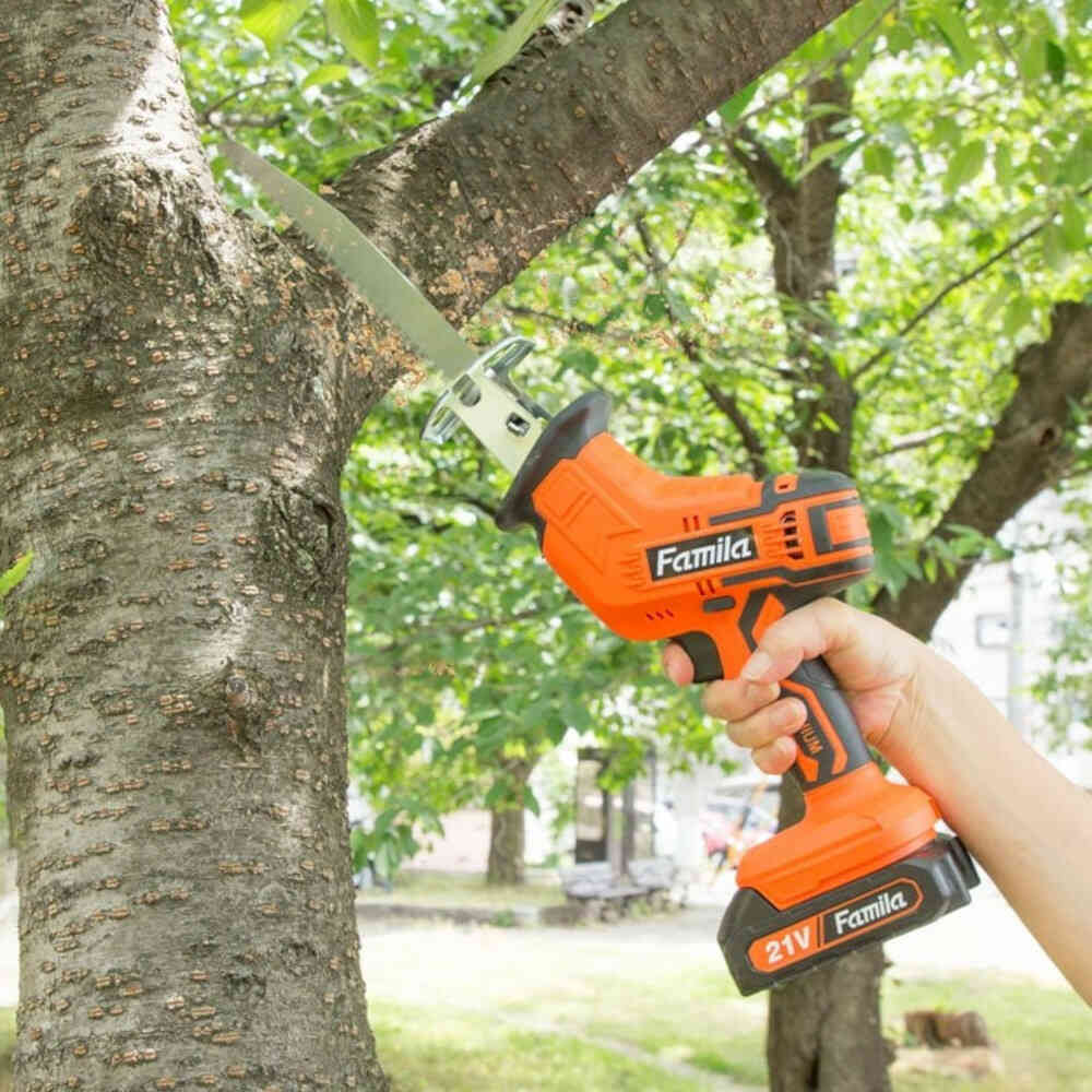Famila ファミラ 充電式 コードレス 電動のこぎり 小型 女性 おすすめ 家庭用 レシプロソー ノコギリ 電動 バッテリー充電 電動工具 剪定 多目的廃棄物 粗大ゴミ 解体 金属切断 カーペット切断 パイプ切断 家具解体 LEDライト付き 替え刃付き