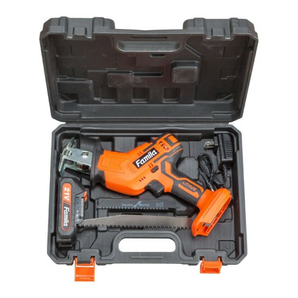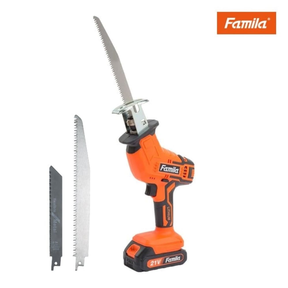 Famila ファミラ 充電式 コードレス 電動のこぎり 小型 女性 おすすめ 家庭用 レシプロソー ノコギリ 電動 バッテリー充電 電動工具 剪定 多目的廃棄物 粗大ゴミ 解体 金属切断 カーペット切断 パイプ切断 家具解体 LEDライト付き 替え刃付き