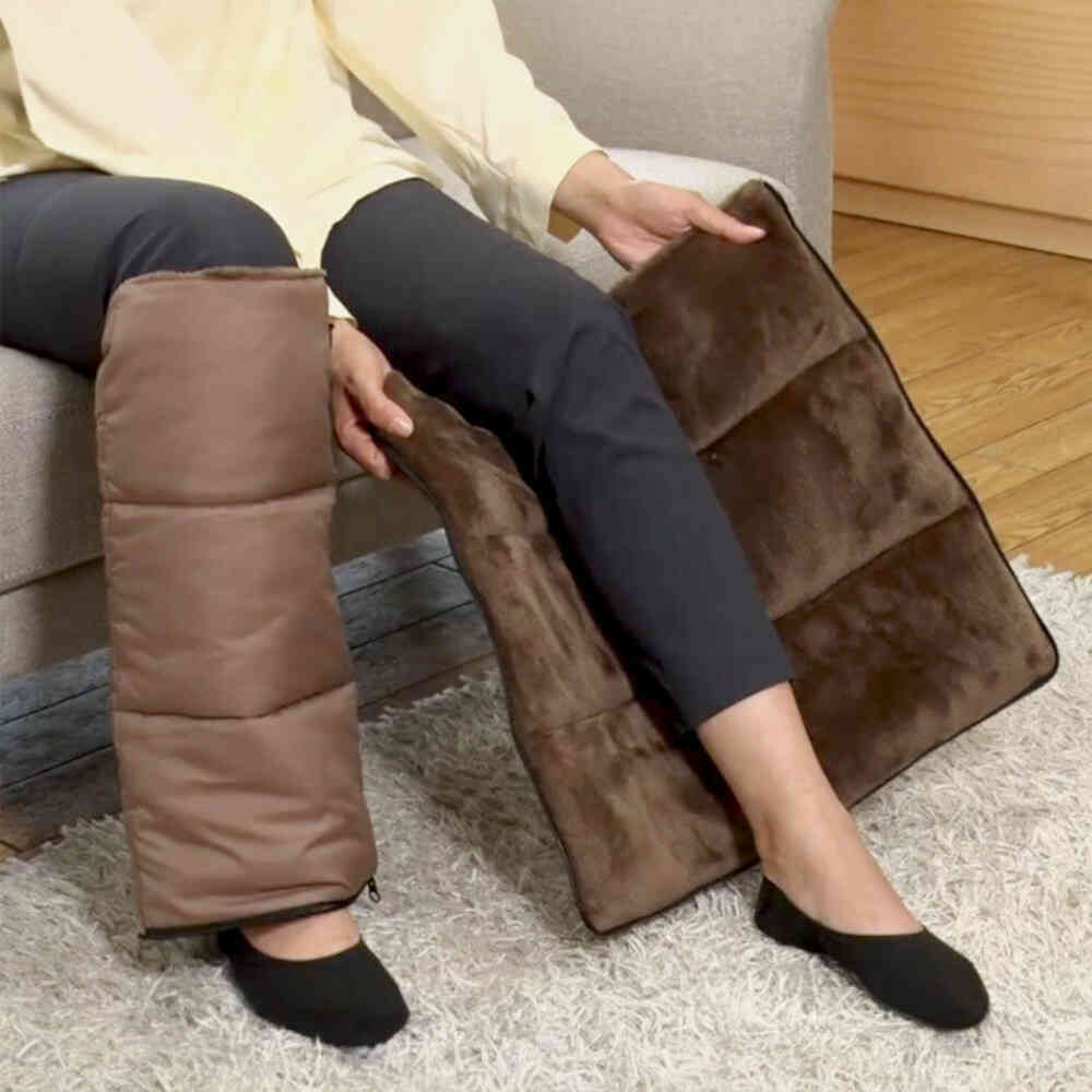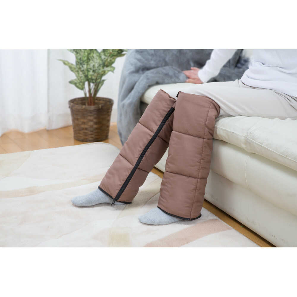 巻くだけであったか!1枚5役のレッグウォーマー ●熱を逃がさない3層構造と、内側のフリース素材で冷えやすい足元から身体全体までじんわり温めます ●締め付けないふんわり巻き付けタイプのレッグウォーマー ●ファミサーモ+蓄熱シート+フリースのトリプル効果!表地(撥水加工)・蓄熱アルミ蒸着シート・蓄熱保温わた(ファミサーモ使用)・裏地(フリース生地) ●反射・蓄熱・保温を繰り返しあたたかさをキープ! ●撥水加工でお手入れカンタン ●体温で蓄熱・保温し節電効果も!! ●ファスナーで巻いて装着、内側はあったかフリース素材! ●1.ふくらはぎウォーマーとして、2.最後までジッパーを閉めてつま先レッグウォーマーに、3.起毛部分を内側にし袋状に繋げて足ポケット、4.起毛部分を外側に重ねて繋げてクッションに、5.2枚を左右に繋げてブランケットに [付属品] 収納袋