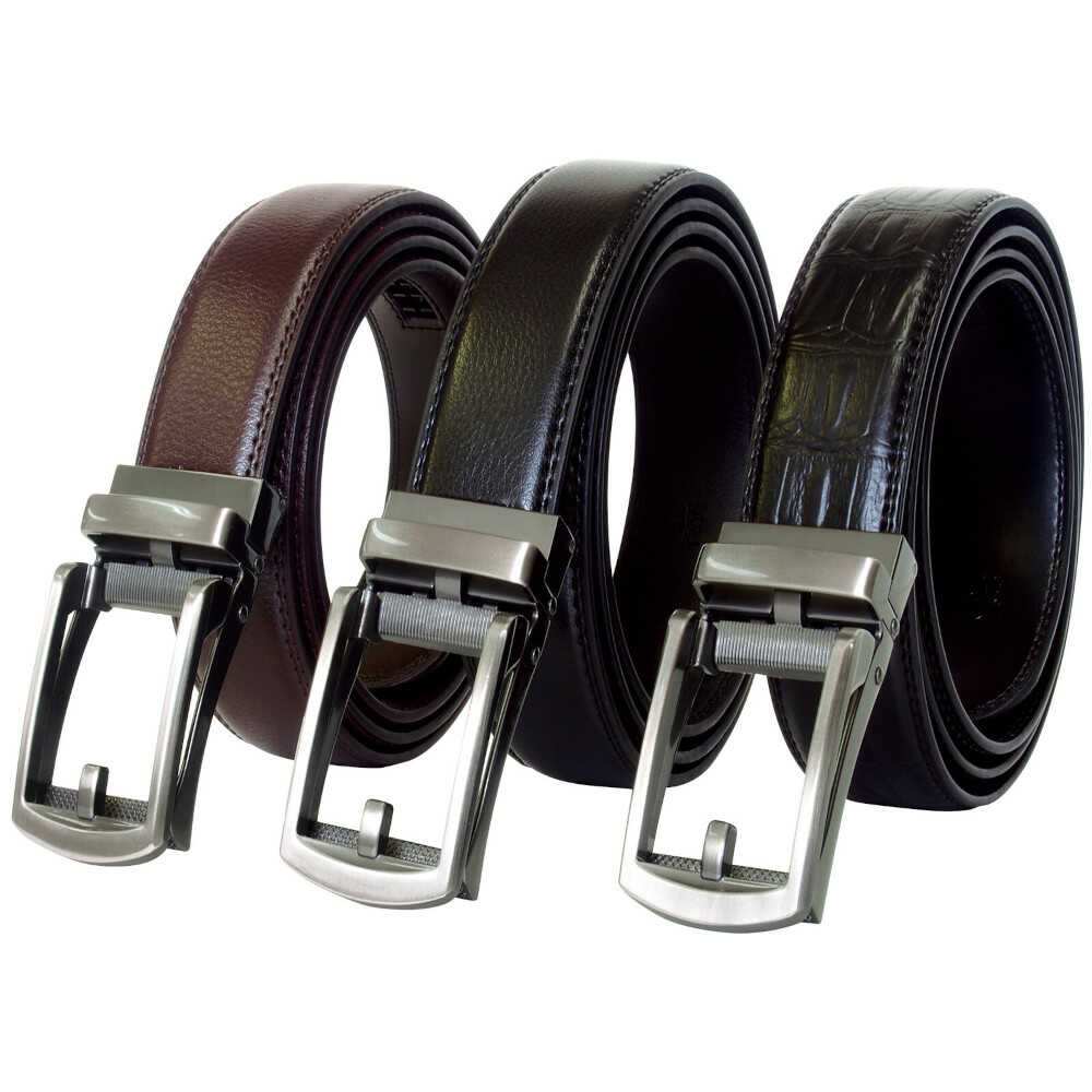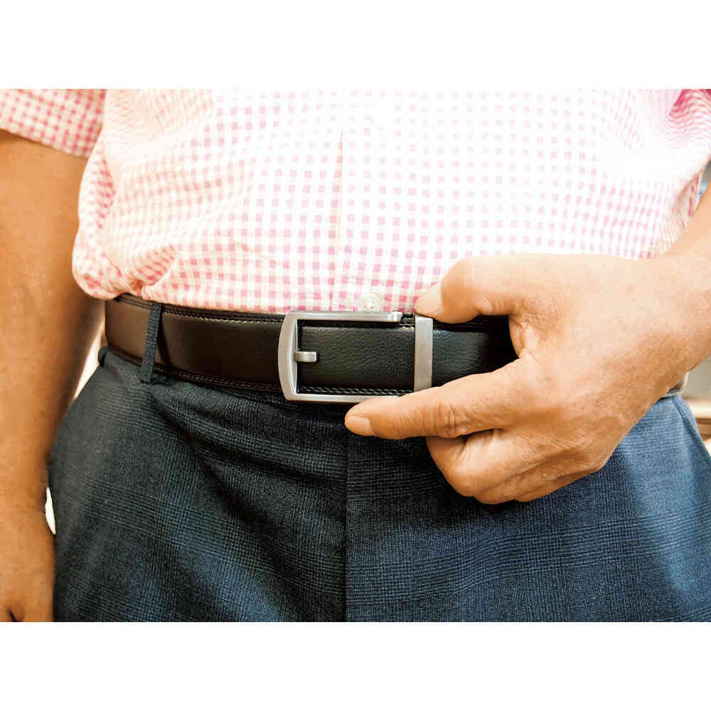 片手でスッとサイズ調整ができる楽々ベルト3本組! ●色/黒+茶+黒(クロコ型押し)の3本組 ●牛革 ●ベルト穴がなくてもお好みの位置で留まるラチェット式。食事後などお腹が苦しい時は、バックルを少し持ち上げてずらすだけで誰にも気づかれずにこっそりサイズ調整が可能です。 ●5mm単位調節できる便利なラチェット式。 ●バックルを動かすだけでサイズ調整ができます。 ●最大約112cmのウエストに対応。 ●ベルト表面には防水性の高いコーティング加工