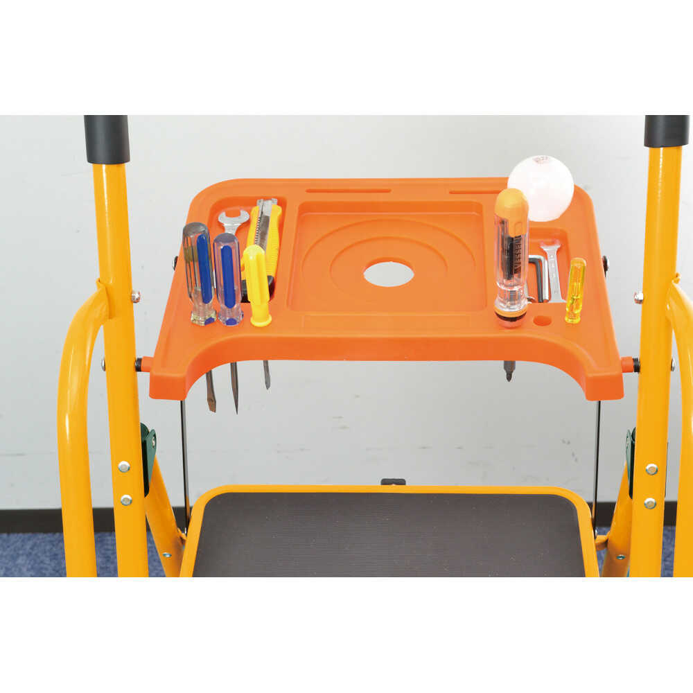 両手すりが付いて昇り降りが安心! ●荷物や工具などが置ける便利なトレー付き ●折りたたんでコンパクトに、スッキリ収納 ●使いたい時にサッと広げて使えるから便利 ●一部組立式 ※両手すりはネジで本体に取り付ける必要があります。