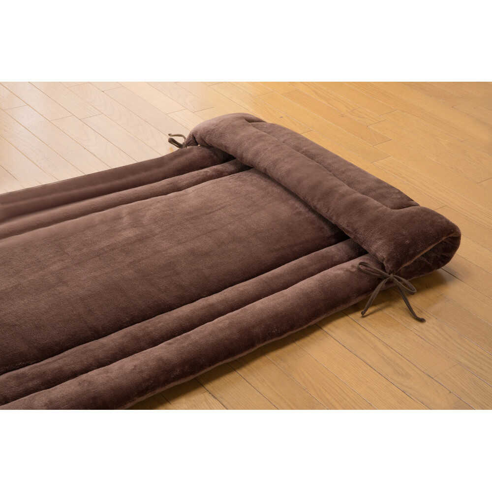 やわらかでとろけるようなフランネル生地を使ったごろ寝長座布団。 ●側生地に5層構造トリプルウォームぽかぽか毛布布団セットの掛布団フランネル生地と中綿にポリエステル100%綿(蓄熱保温綿【ファミサーモ】30%)を使用した長座布団です。 ●蓄熱保温綿(ファミサーモ)入りで暖かく、体から出る熱を蓄熱します。 ●サイズは約75×175cmと幅が広く、大人がゆったり寝転がれる安心サイズ。 ●お昼寝用マットや来客用マットレス、車中泊や仮眠スペースなど幅広く活躍します。 ●端部を折りたたんで紐で結べば枕や足枕としてもお使いいただける3Way仕様。 [仕様] ●ひも・ループ付き