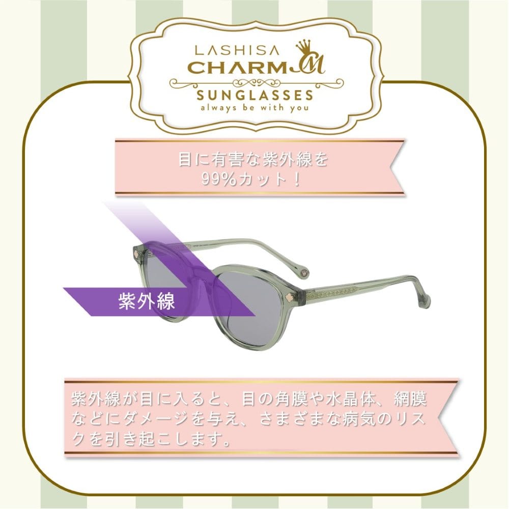 ●こちらの商品はファッション用グラスです。家庭用品品質表示法の「サングラス」には該当しませんのでご注意のうえお買い求めください。 ●紫外線(UV)カット率:99.9% ●ドライブ・レジャー・旅行など幅広い場面でお使いいただけます。