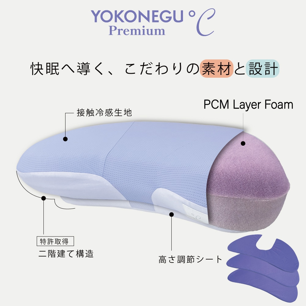 横寝枕 ヨコネグプレミアムドシー YOKONEGUPremium °C cocochi factory 枕 横寝 仰向け寝 肩こり 首こり ストレートネック 横向き 冷感 ひんやり いびき 首痛み 頭痛 洗える まくら 快眠 安眠 人気 プレゼントにおすすめ