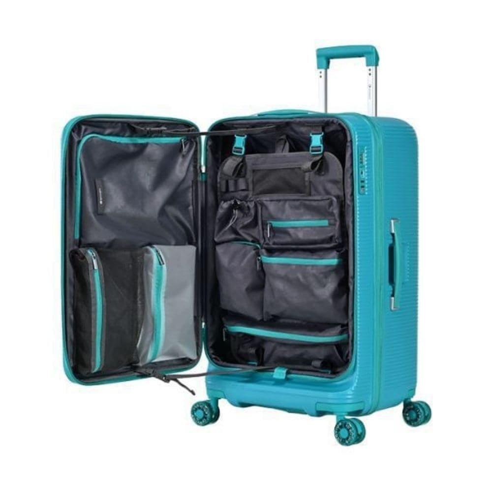 アウトドアを意識した拡張可能な多機能スーツケース。ショックアブソーバー付きキャスターを採用し移動もラクラク。取り外しできる収納で使い勝手も向上。TSAロック搭載で海外旅行も安心.TSAロック搭載で海外旅行も安心。収納比率1:9デザインにより、下部の収納スペースが深く、効率的に収納でき、空間を無駄にしません。防水収納袋と多層の収納スペースがあり、衣類、旅行用品、キャンプ用品を簡単に分類して収納できます。ショックアブソーバー付き360度回転キャスターで優れた衝撃吸収機能で引きやすさと静音性が向上。仕切り板は取り外し可能で、臨時の収納バスケットとしても使えます。最上部の2つの収納ポーチは取り外して持ち運びでき、使用の自由度が大幅にアップ。横向きに置くと、小さなテーブルに早変わり。飲み物や小物を軽く置けるようになり、テント設営や装備整理の合間にも便利です。正面には2つの円形のくぼみがあり、飲み物を置いても倒れる心配なし。背面には折りたたみ式カップホルダーがあり、飲み物や傘などを置けます。側面フック付きの足元収納で、提げバッグなどを掛けることができます。