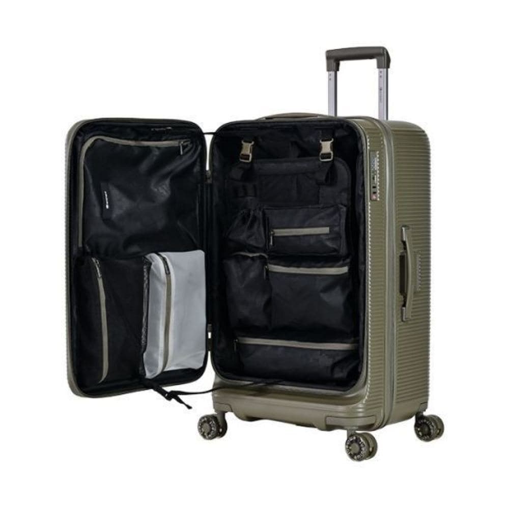 アウトドアを意識した拡張可能な多機能スーツケース。ショックアブソーバー付きキャスターを採用し移動もラクラク。取り外しできる収納で使い勝手も向上。TSAロック搭載で海外旅行も安心.TSAロック搭載で海外旅行も安心。収納比率1:9デザインにより、下部の収納スペースが深く、効率的に収納でき、空間を無駄にしません。防水収納袋と多層の収納スペースがあり、衣類、旅行用品、キャンプ用品を簡単に分類して収納できます。ショックアブソーバー付き360度回転キャスターで優れた衝撃吸収機能で引きやすさと静音性が向上。仕切り板は取り外し可能で、臨時の収納バスケットとしても使えます。最上部の2つの収納ポーチは取り外して持ち運びでき、使用の自由度が大幅にアップ。横向きに置くと、小さなテーブルに早変わり。飲み物や小物を軽く置けるようになり、テント設営や装備整理の合間にも便利です。正面には2つの円形のくぼみがあり、飲み物を置いても倒れる心配なし。背面には折りたたみ式カップホルダーがあり、飲み物や傘などを置けます。側面フック付きの足元収納で、提げバッグなどを掛けることができます。