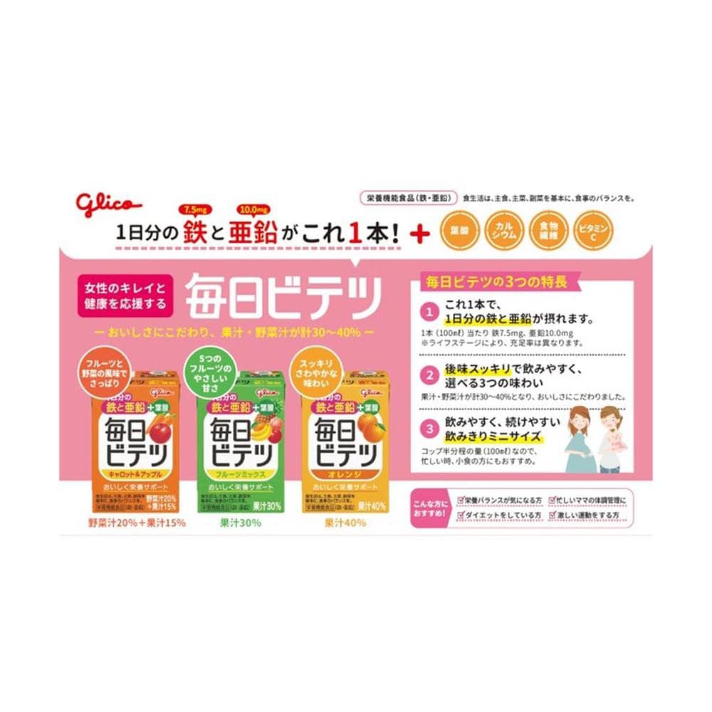 江崎グリコ、グリコ、毎日ビテツ、ビテツ、鉄分、亜鉛、葉酸、マタニティ、フルーツミックス、飲料、ドリンク、栄養