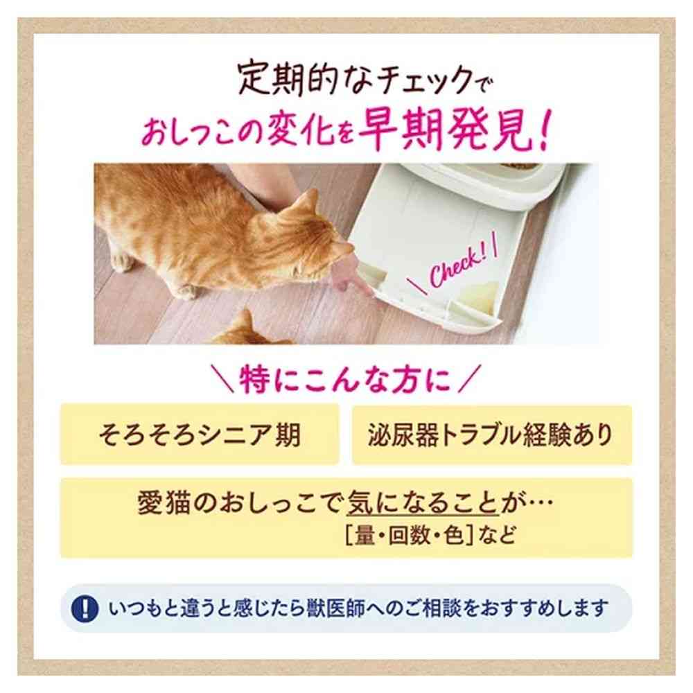 本品は猫の尿比重を簡易的にチェックするものです。猫の疾患や症状を診断、治療するものではありません。 おしっこ比重チェッカーは1回使い切りです。1度使用した物を再使用しないでください。 おしっこの濃さ(比重)は、猫ちゃんの食餌、時間帯、使用時の環境などで変化する場合があります。