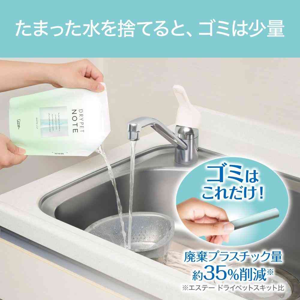 ●吸収スピード約2倍の超パワフル吸収!※ ●ゴミが少ないスタンドパック容器の除湿剤。廃棄プラスチック量約35%削減※ ※エステードライペットスキット比