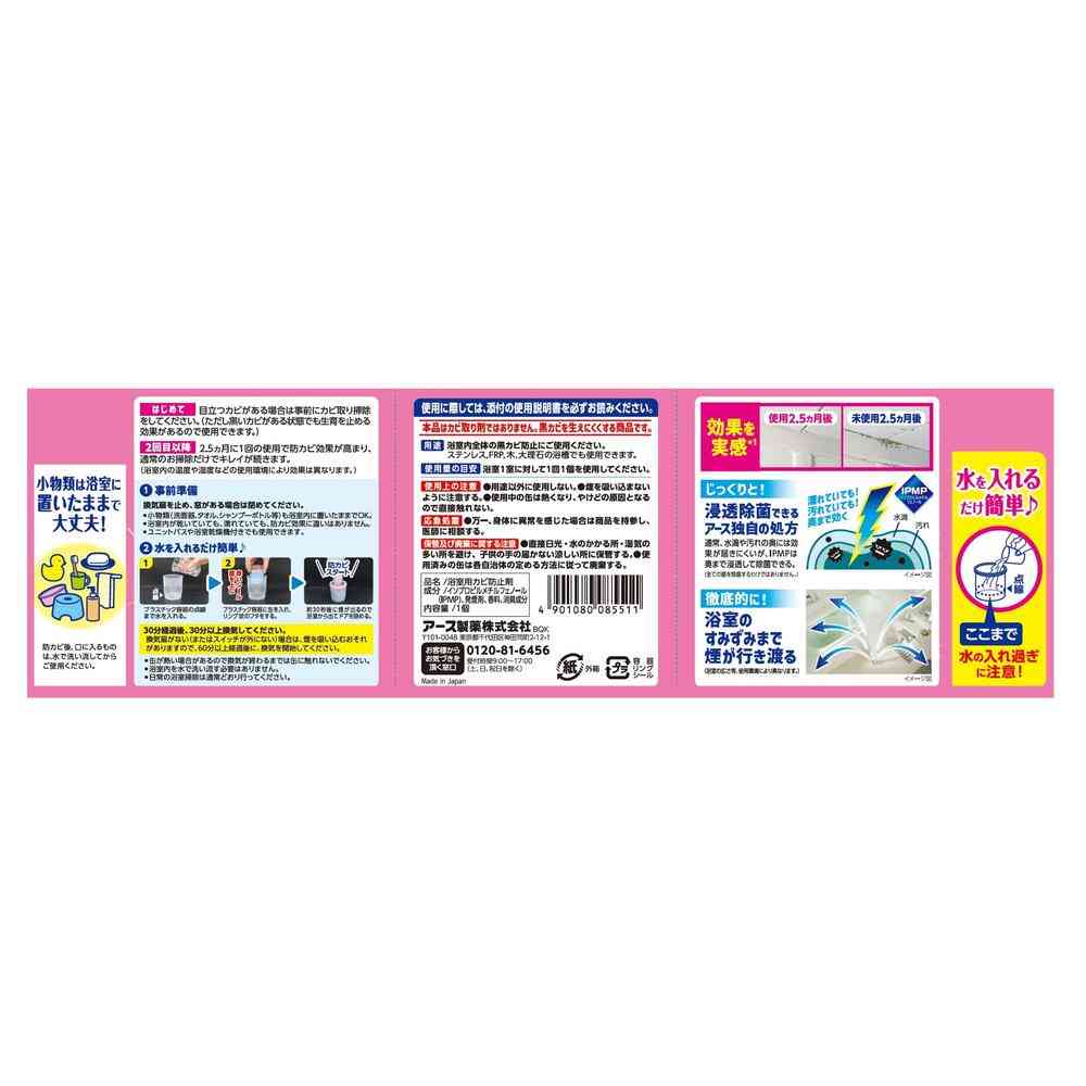 アース、EARTH、お風呂、風呂、風呂場、浴室、かびーぬ、カビ、カビ取り、カビ対策、防カビ、燻煙剤、くん煙、掃除、大掃除、風呂掃除、除菌、消臭、清潔、黒カビ、水垢、水アカ、ローズ、フローラル
