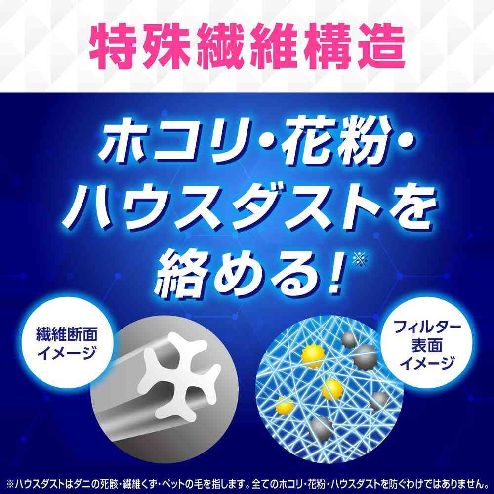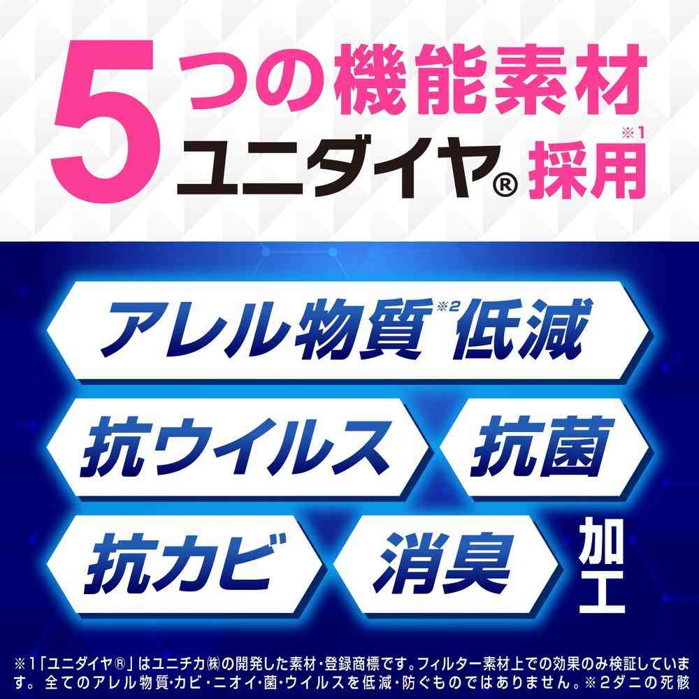 5つの機能素材を持つユニダイヤを採用したエアコン天面(上面)用のフィルターです。 展開しやすいフック付き個箱です。 特殊構造繊維で、ホコリ・花粉・ハウスダストを絡める! ※ ハウスダストはダニの死骸・繊維くず・ペットの毛を指します。全てのホコリ・花粉・ハウスダストを防ぐわけではありません。 エアコンを通る空気の流れを妨げにくい!