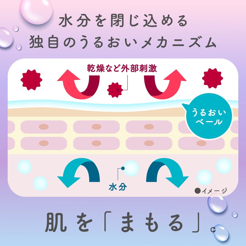 うるおいベールが肌をまもる、高保湿入浴液。 角層深くまで浸透する3種の保湿成分とうるおいベール成分が肌をやさしく包み、うるおいを閉じ込めます。 乳白色のお湯です。