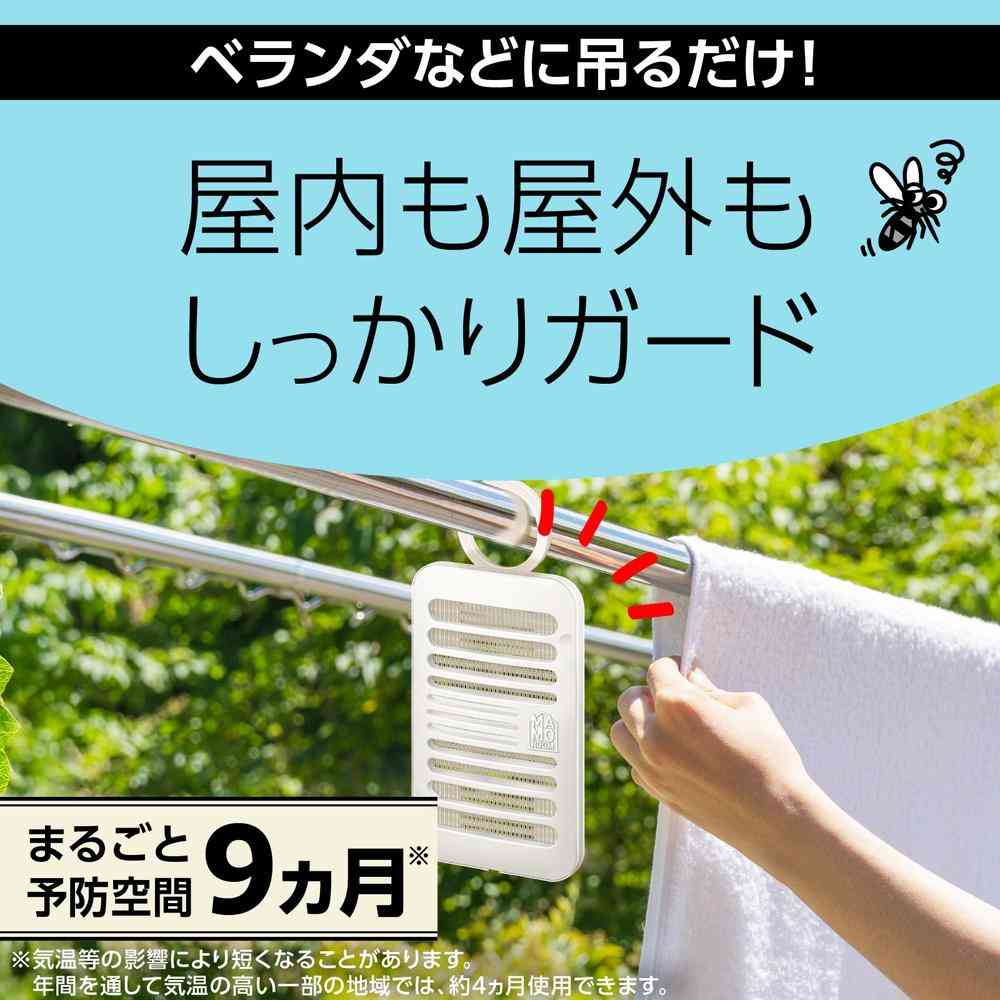 ベランダなどの出入口付近に設置するだけで、屋内への蚊の侵入を阻止。 屋外での忌避効果も。 直径約4mの範囲で効果があります。