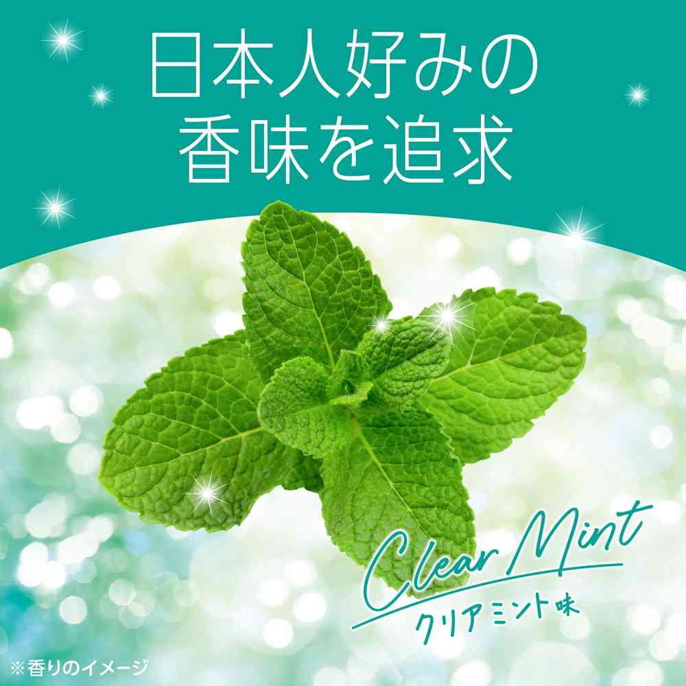 ●溶剤:水、エタノール ●湿潤剤:グリセリン ●可溶化剤:PEG-60水添ヒマシ油 ●矯味剤:キシリトール、サッカリンNa ●pH調整剤:リン酸Na、リン酸2Na ●洗浄剤:セテス-25 ●洗浄補助剤:三リン酸5Na ●保存剤:プロピルパラベン ●香料(クリアミントタイプ) ●着色剤:黄4、青1