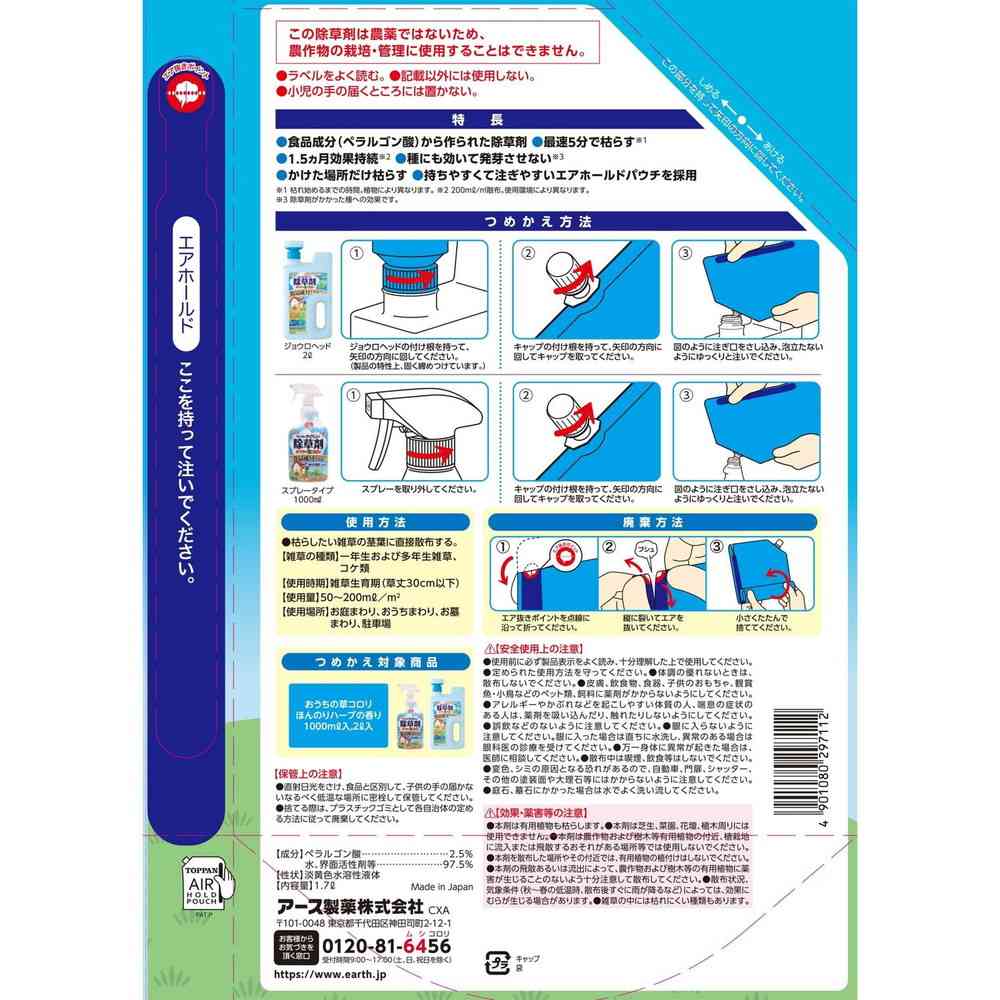 おうちの草コロリ ほんのりハーブの香り 1000ml入、2l入
