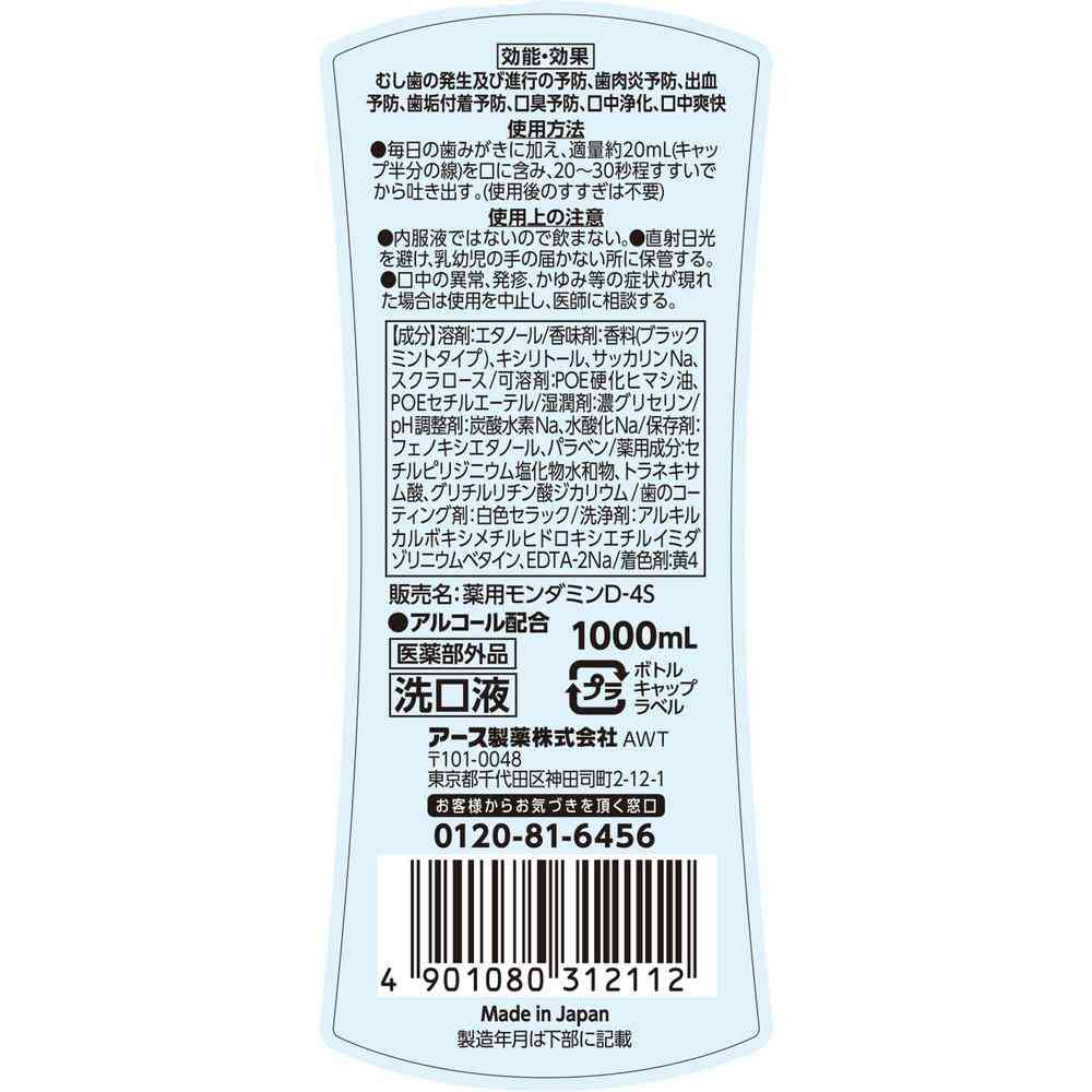 もんだみん、マウスウォッシュ、まうすうぉっしゅ、洗口液、口腔ケア、口臭ケア、オーラルケア、口臭予防、口臭対策、虫歯予防、虫歯対策、歯周病予防、歯肉炎予防、予防、対策、大容量、液体、液剤、アース