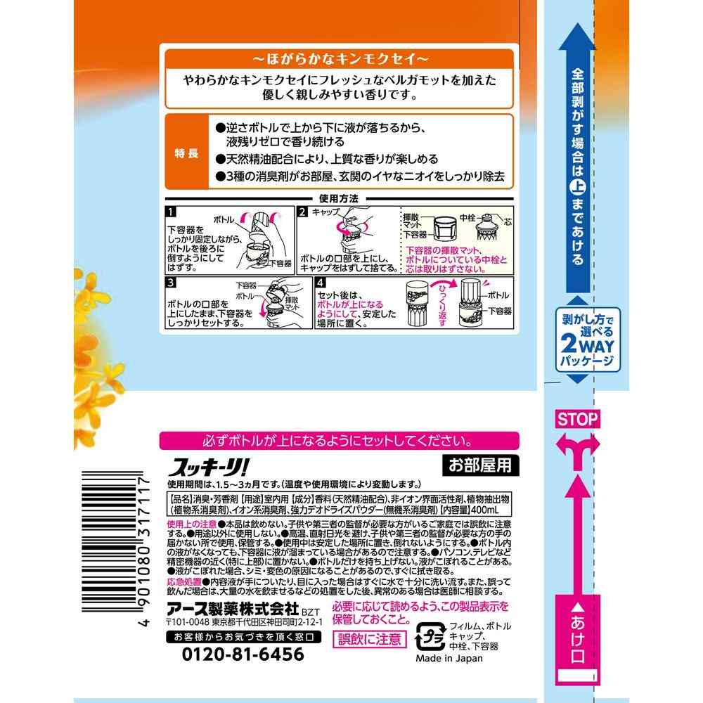 スッキーリ、すっきーり、Sukkiーri、芳香剤、消臭剤、消臭芳香剤、消臭、芳香、消臭芳香、芳香消臭、ニオイ、臭い、匂い、におい消し、匂い消し、対策、ルームフレグランス、タバコ、煙草、空間、部屋、室内、屋内、リビング、寝室、子供部屋、玄関、部屋用、室内用、屋内用、玄関用、置き型、置くだけ、アース