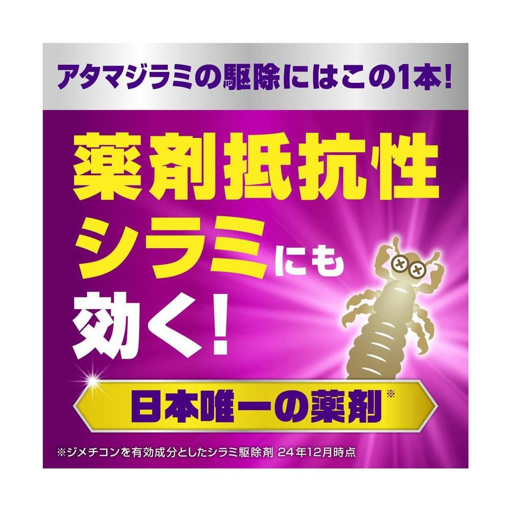 しらみ、虱、ケジラミ、毛虱、毛しらみ、卵、シラミ取り、シラミとり、しらみとり、シラミ駆除、シラミ退治、シラミ対策、髪の毛、殺虫剤、駆除剤、殺虫、駆除、退治、撃退、対策、忌避、乳児、幼児、小学生、中学生、国産、アース製薬