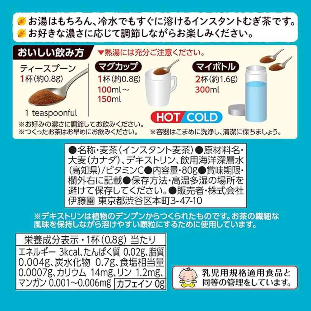 伊藤園、健康ミネラルむぎ茶、さらさら、麦茶、マイボトル、顆粒、粉末、カップ、ノンカフェイン、カフェインゼロ、赤ちゃん、ベビー、チャック