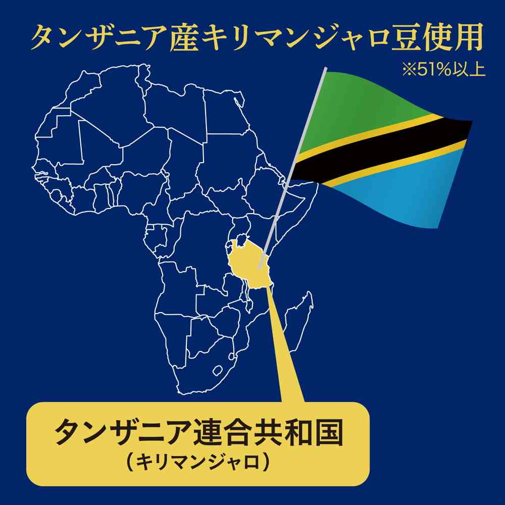 華やかな香りがたのしめる、優しいコクのブラックコーヒー ●アフリカ・タンザニアのアラビカ豆「キリマンジャロ豆」を51%以上使用。 ●短時間焙煎で引き出す華やかな香りと、じっくりカラメル焙煎で引き出した甘い香りを組み合わせました。 ●東アフリカで親しまれる一枚布「カンガ」をイメージしたデザインです。 ●無糖・ノンシュガー・ブラックのコーヒーをお探しの方におすすめです。