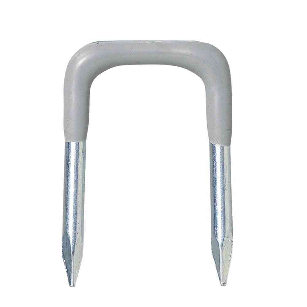 配線処理、コード固定、配線固定、コード止め、電線固定、配線留め、ケーブル固定、内寸6.5mm、グレー、鉄製釘、三価クロメートメッキ、塩化ビニール被覆、鉛フリー、VFF0.75mm2対応、VFF1.25mm2対応、2本固定、配線整理、配線施工、仮固定、屋内配線、配線部材