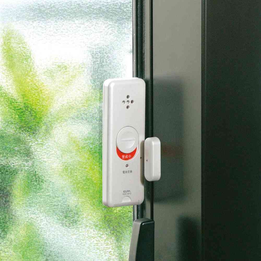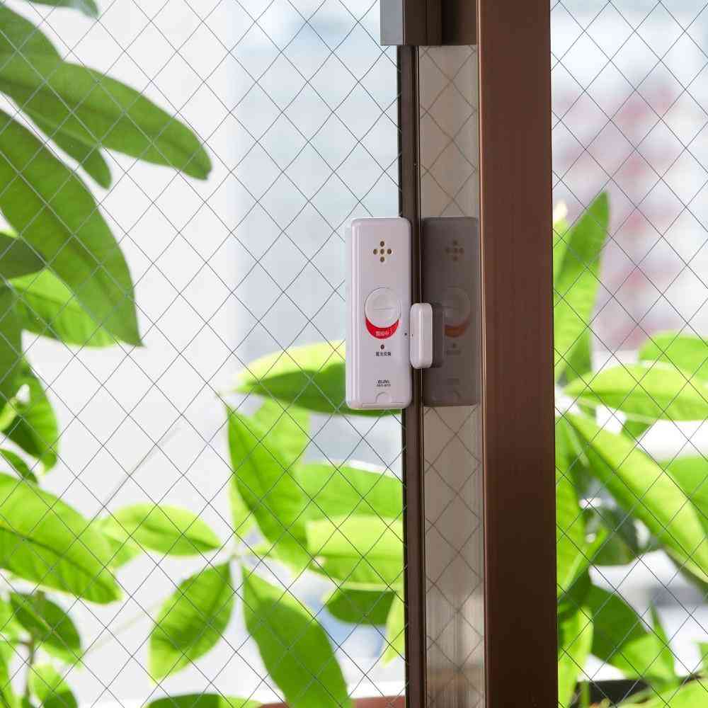 防犯、窓、衝撃・解放感知、ダブル検知、衝撃検知、マグネット検知、開放検知、窓用アラーム、ドア用アラーム、防犯アラーム、窓設置、ドア設置、警報ブザー、大音量90dB、約25秒鳴動、薄型設計、厚さ8mm、スライドスイッチ、簡単操作、型板ガラス対応、屋内専用、電池式、防犯対策、窓防犯、ドア防犯