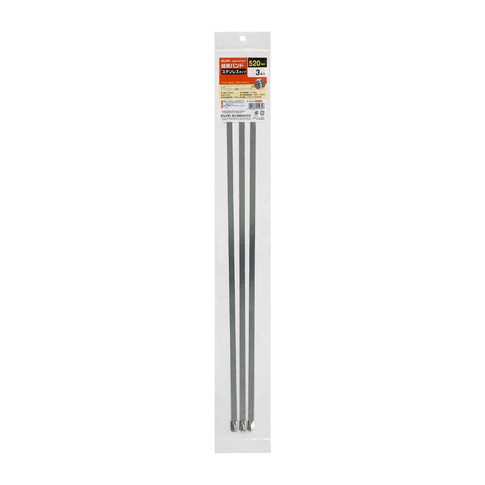 ●ステンレスタイプ ●がっちり固定して屋外で使える■全長:520mm ■幅:8mm ■最大結束内径:152mm ■引張強度:113.4kg ■使用温度範囲:-40度~+300度 ■材質:ステンレス(SUS304) ■3本入