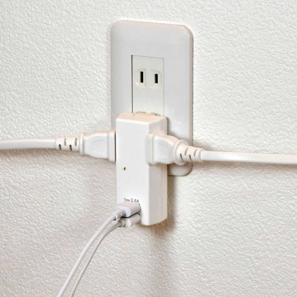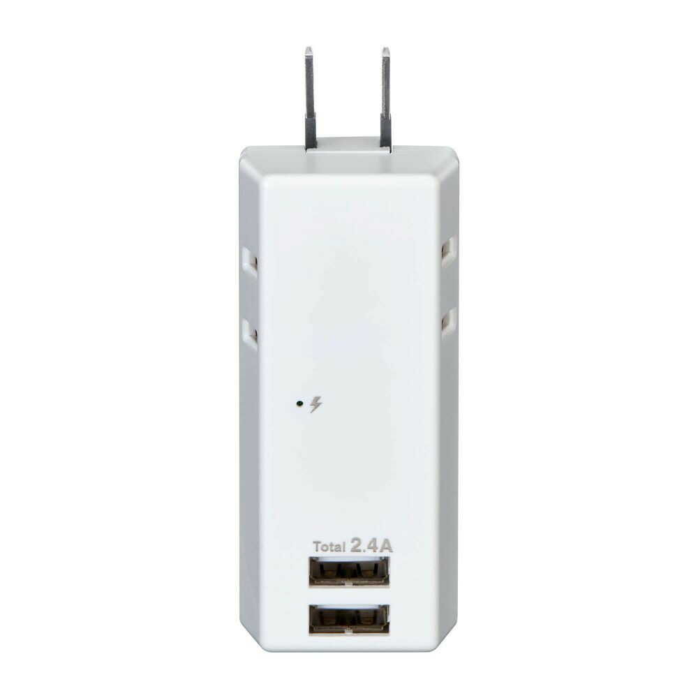 ●スマートフォンを2台同時充電可能!(USBポート) ●iPhone、iPad、Androidスマートフォン/タブレットを充電可能です。 ●接続された機器(iPhone、iPad、Android等)に対し、最適な出力を自動識別し、急速充電する自動識別機能 ●過電流保護機能で過電流等の異常発生時は出力が自動遮断され、安心です。 ●2ポート合計2.4Aまで ●雷から接続機器を守る耐雷サージ機能付 ●耐トラッキングカバーでトラッキング火災を予防します。 ●雷ガード表示LED付 ●収納プラグ ■AC差込口定格:AC100V14A ■使用温度範囲:-10度~40度 ■口数:2個口 ■AC差込口合計1400Wまで ■屋内専用 USBポート ■定格:DC5V最大2.4A(2ポート合計) ■コネクタ形状:USBAタイプ(メス) ■ポート数:2ポート
