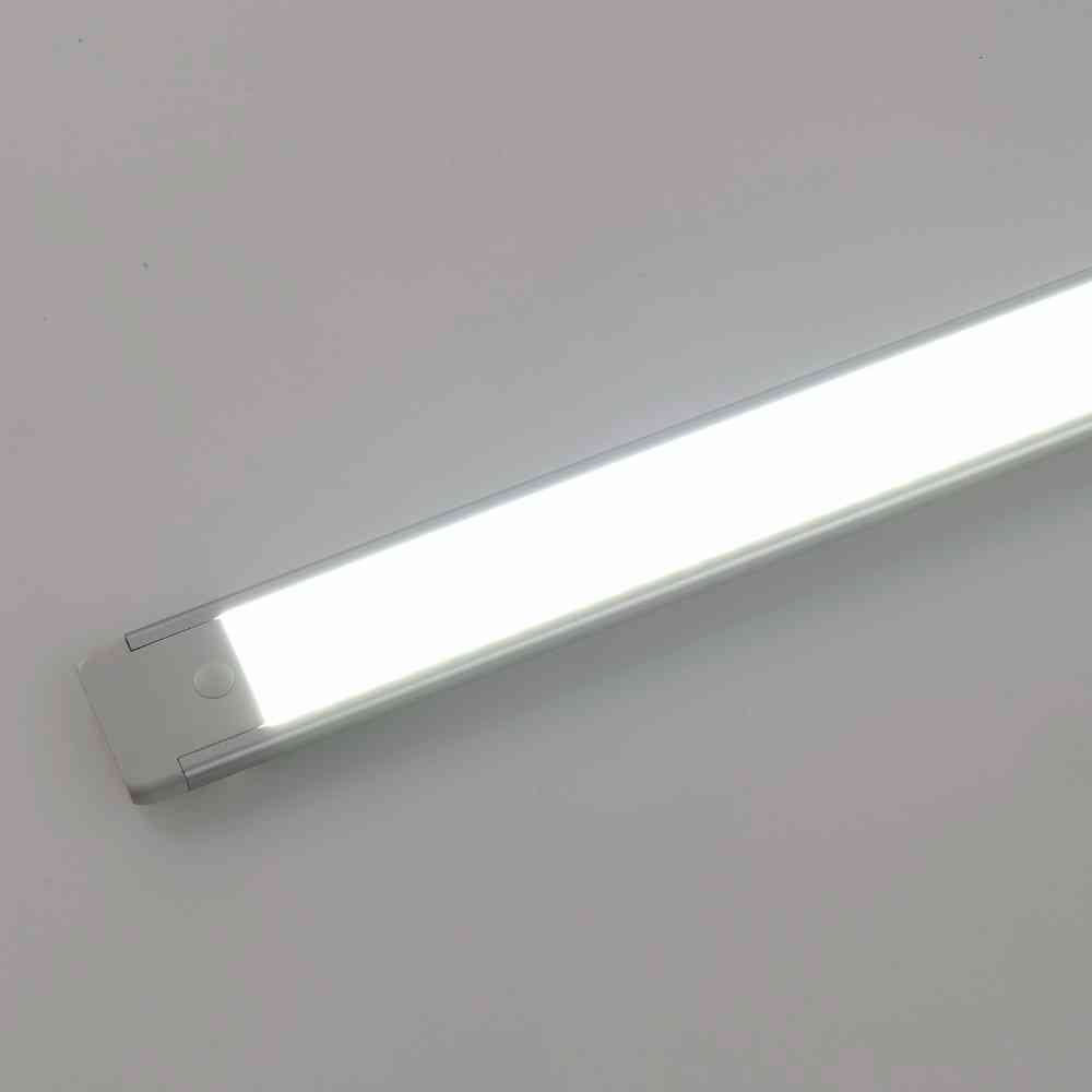 ●USB電源でコンセントがない場所でも明るく照らせます。 モバイルバッテリー・パソコンなどでご使用いただけます。 ●非接触スイッチに手をかざすだけで電源をON/OFF、手をかざし続けると、明るさ最大(100%)~最小(約10%)の間で無段階調光できます。 ●付属マグネットホルダーで角度調整可能 ●導光板使用でスリムなのにムラなくしっかり明るい ●薄型スリムなので簡単に取り付け可能 ・マグネットホルダー ・両面テープ ・木ねじ ■電源:DC 5V(microUSB)/1A ■光源:LED(昼光色相当) ■全光束:280lm(明るさ100%点灯時) ※調光機能で100%~約10%の範囲で変更できます。 ■R a:80 ■使用温度範囲:10~40℃ ■外形寸法(約):幅32×長さ304×厚み7(mm)(最大値) ■質量:約90g ■付属品:USBケーブル(約2m)、マグネットホルダー 2個、木ねじ 大(Φ2.8×19mm) 2本 小(Φ2.8×9.5mm) 2本、スリーブ(Φ6×28mm)2本、両面テープ(7.5×2.5cm)2枚
