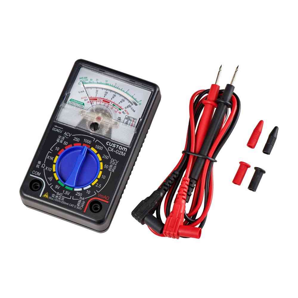 ●ブザー音で簡単に導通チェック ●1.5Vと9V電池のチェックができます ●テストリード保護キャップ付 ●ミラー付き目盛板 ●日本語表記付 ■測定方法 ■直流電圧:2.5V/10V/50V/250V/1000V ■交流電圧:10V/50V/250V/1000V ■直流電流:10mA/250mA ■抵抗:×10(10kΩ)/×1K(1MΩ) ■導通試験:約80Ω以下でブザー ■電池チェック:1.5V/9V ■低周波出力:-20~50dB ■付属品:テストリード 1組、単三形乾電池 1本 (テスト用 内蔵)、取扱説明書、ヒューズ内蔵(0.5A/250V(Φ5×20mm))