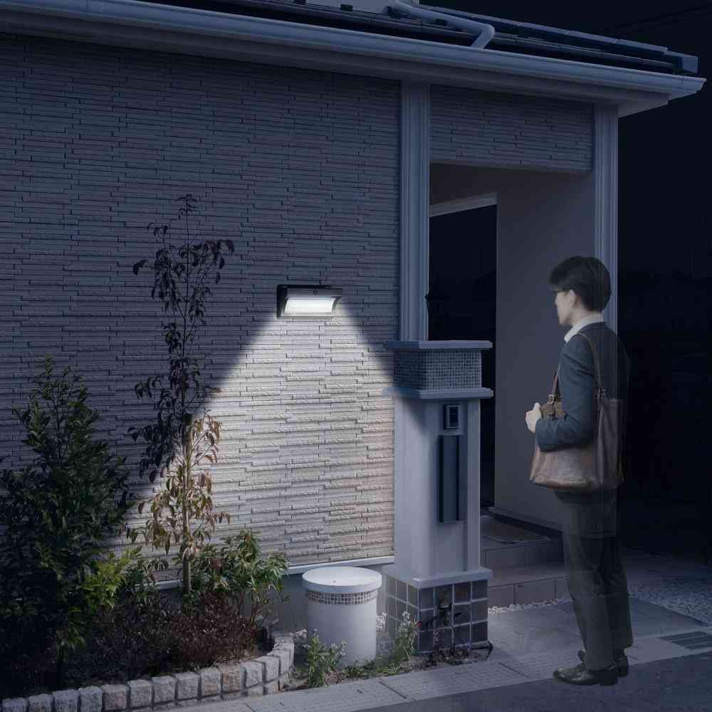 ●外壁と調和する高品質アルミボディ ●暗い時にセンサーが人や車の動きを検知して自動点灯 ●下方向照射タイプ ●ソーラー発電式なのでコンセントがない場所に設置できて、電気代もかかりません。 ●周囲が暗くなると自動で点灯する常夜灯モード搭載(電球色) ●屋外に設置できる防水仕様(IP65防噴流形) ■電源:ニッケル水素充電池3.6V1800mAh ※充電池の交換はできません。 ■付属品:取付ネジ2本(Φ4×25mm)、コンクリート用スリーブ2本(Φ6×30mm)