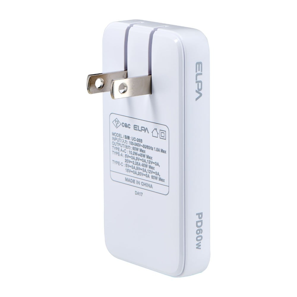 ●PD対応なので最大60Wまでの給電が可能(USBポートのうちType-Cポートのみ使用時) ●PD対応ノートPC、スマートフォン等を超速充電できます(USBポートのうちType-Cポートのみ使用時) ●GaNチップを採用。発熱を抑えて安全に使用できます ●薄型&収納プラグでカバンやポーチにスッキリ収まり携帯しやすい ●2台同時充電可能 ●わずか14.6mmの薄型設計■使用温度範囲:0℃~30℃ ■定格 Type-Aポート:DC5V 3A/9V 3A/12V 3A/20V 2.25A 45WMax Type-Cポート:DC5V 3A/9V 3A/12V 3A/15V 3A/20V 3A 60WMax 2ポート同時使用時:10.2W+45W Max ■ポート数:Type-A 1ポート/Type-C 1ポート ■カラー:ホワイト