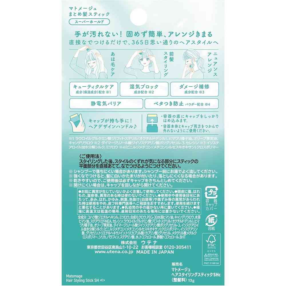 あほ毛・前髪も固めずキープ。 手が汚れず、簡単にアレンジがきまるスティック型ワックス。 しっかり仕上げ。 無香料。