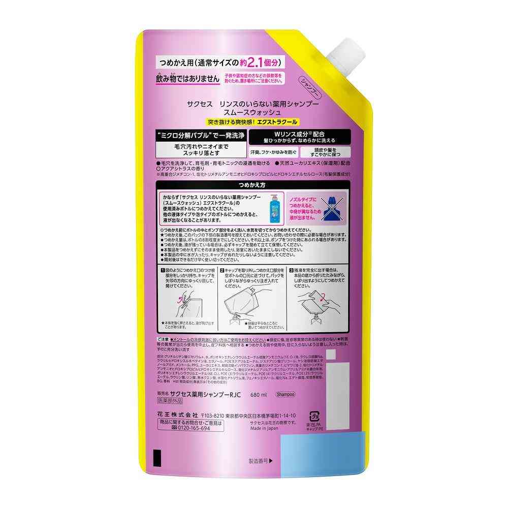 花王、男性、メンズ、男性化粧品、サクセス、success、薄毛、抜け毛、ボリューム、アップ、皮脂、頭皮、ニオイ、臭い、加齢臭、アブラ、脂性肌、シャンプー、詰替え、詰め替え、つめかえ、レフィル、リンス、トリートメント、1本、リンスのいらない