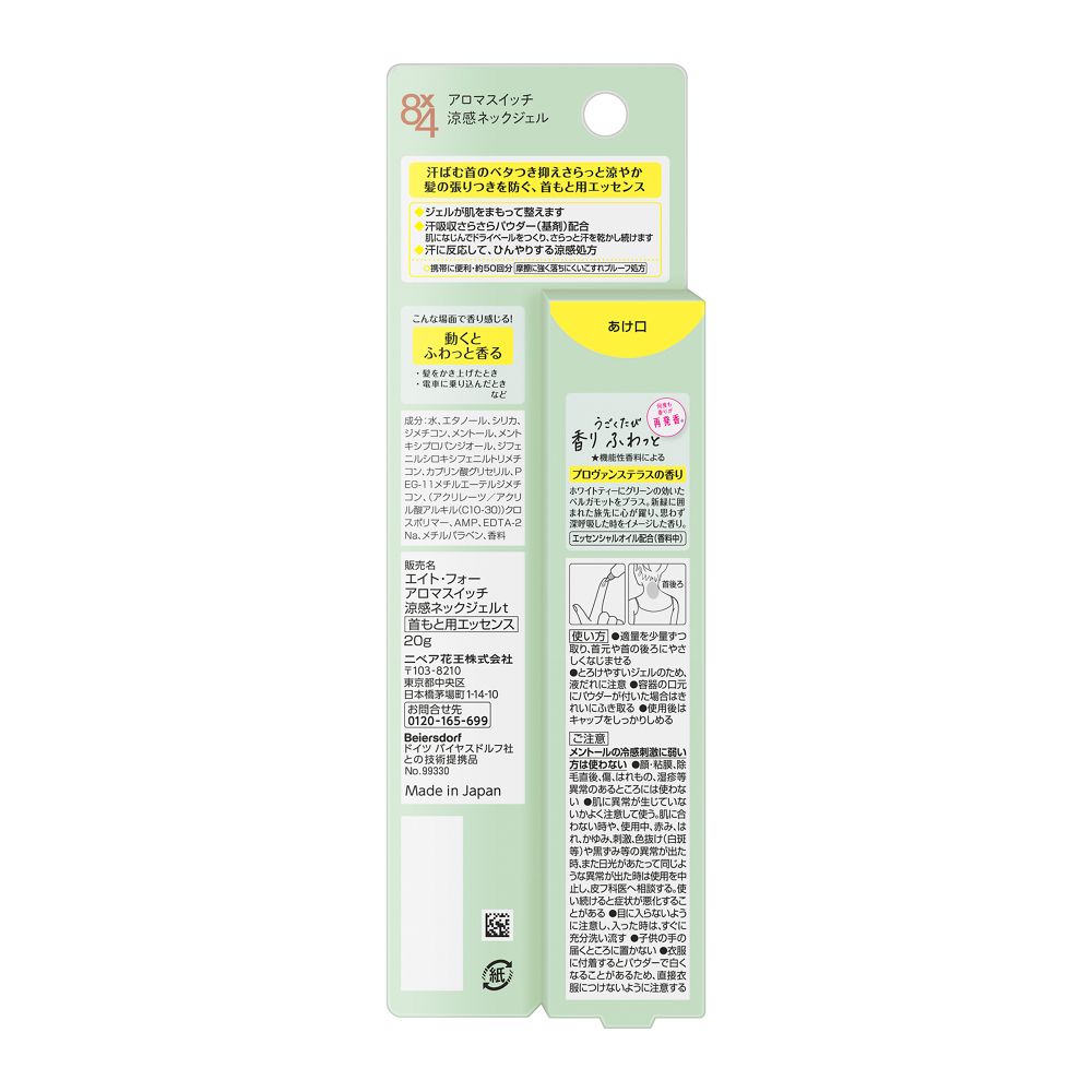 汗ばむ首のベタつき抑えさらっと涼やか 髪の張りつきを防ぐ、首もと用エッセンス ジェルが肌をまもって整えます 汗吸収さらさらパウダー(基剤)配合 肌になじんでドライベールをつくり、さらっと汗を乾かし続けます 汗に反応して、ひんやりする涼感処方 携帯に便利・約50回分 摩擦に強く落ちにくいこすれプルーフ処方