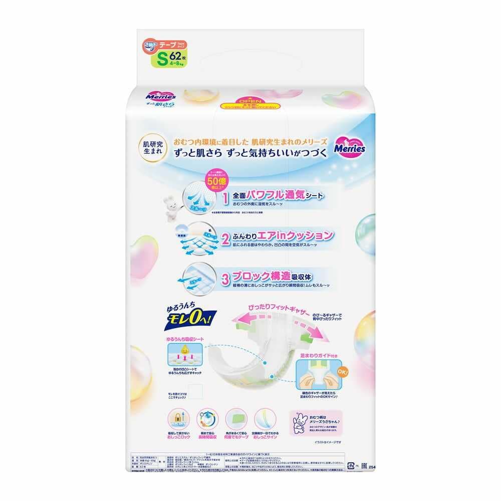 花王、メリーズ、エアスルー、さらさらエアスルー、テープ、おむつ、Sサイズ、赤ちゃん、赤ちゃんおむつ、肌にやさしいおむつ、かぶれにくい、おむつお祝い、おむつ生まれたて