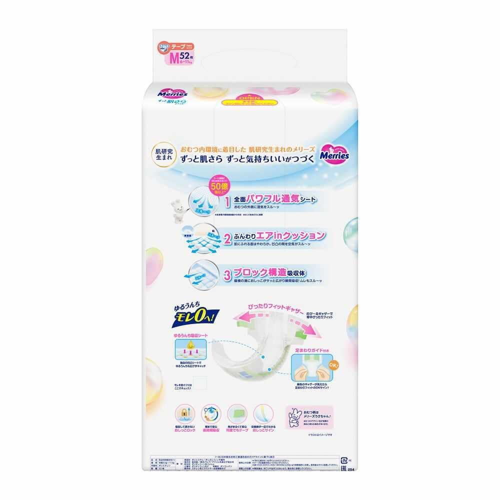花王、メリーズ、エアスルー、さらさらエアスルー、テープ、おむつ、Mサイズ、赤ちゃん、赤ちゃんおむつ、肌にやさしいおむつ、かぶれにくい、おむつお祝い、おむつ生まれたて