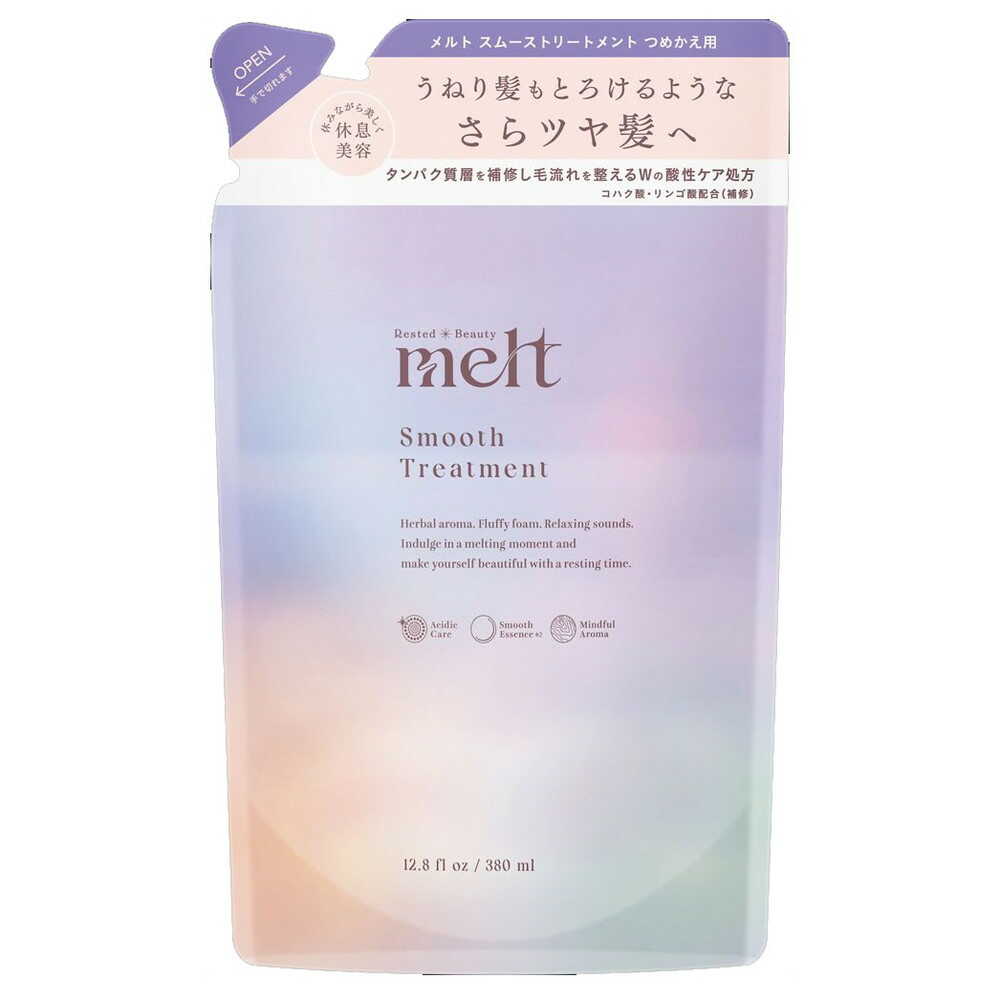 ◇髪ストレス因子*1に着目 うるおいと毛流れ補整で、なめらかにまとまる とろけるようなさらツヤ髪へ *1 日常生活の中で自然に受ける乾燥、摩擦、絡まり、湿気のこと うねり髪のタンパク質層を補修してときほぐし、毛流れを整えるWの酸性ケア処方 傷んだ髪表面のタンパク質層を補修:コハク酸(補修) 傷んだ髪深部のタンパク質層に浸透し、空洞を集中補修:リンゴ酸(補修) なめらかさと輝きを引き出すスムース美容液成分*2配合 *2 加水分解ケラチン(羊毛)・加水分解シルク・加水分解コラーゲン・ジラウラミドグルタミドリシンNa・アルガニアスピノサ核油・ヒマワリ種子油・乳酸(つや付与・保湿) 時を忘れるようなマインドフルアロマ ピオニー&フィグの香り 香料の一部に天然精油をブレンド ●湿気による広がりを抑える ●天然由来エキス配合:ゼラニウム*3・イエライシャン・セージ・ラノリン脂肪酸(補修) ●フリー設計:サルフェートフリー、合成着色料フリー ●詰め替え用 *3 ニオイテンジクアオイ油