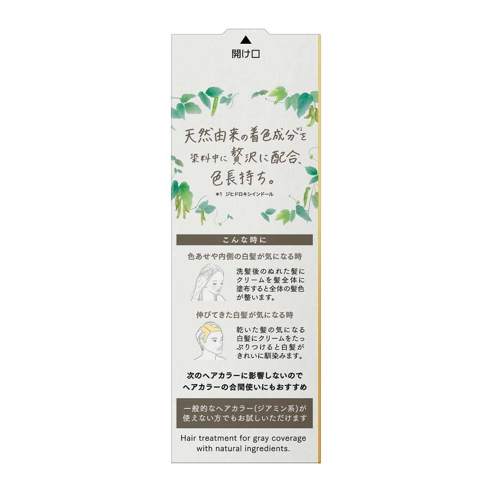 つけかえ用 白髪用 色長持ちカラートリートメント 天然由来の着色成分*1を染料中に贅沢に配合、色長持ち。 *1 ジヒドロキシインドール 一般的なヘアカラー(ジアミン系)が使えない方でもお試しいただけます Hair treatment for gray coverage with natural ingredients.