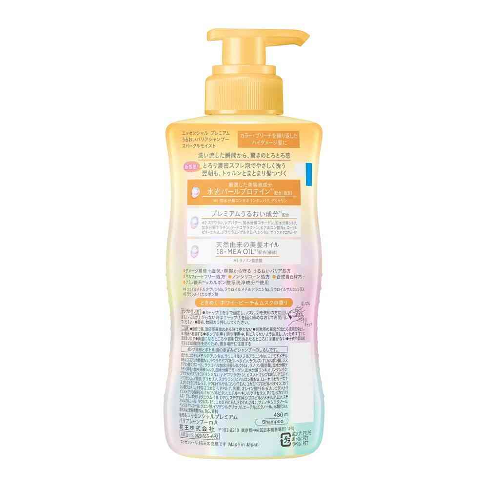カラー・ブリーチを繰り返したハイダメージ髪に。 洗い流した瞬間から、驚きのとろとろ感。 新感覚!とろり濃密スフレ泡でやさしく洗う。翌朝も、トゥルンとまとまり髪つづく。 ●厳選した美容液成分水光パールプロテイン配合(保湿)(加水分解コンキオリンタンパク、グリセリン) ●ダメージ補修+湿気・摩擦から守るうるおいバリア処方 ●アミノ酸系洗浄成分使用 ●ときめくホワイトピーチ&ムスクの香り