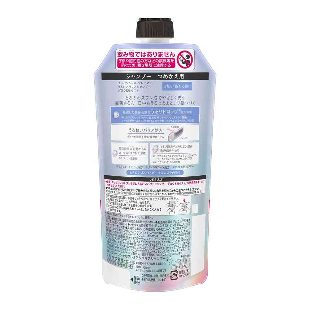 ヘアケア、アウトバス、髪、エッセンシャル、 プレミアム、うるおい、シャンプー、 バリア、モイスト、グロウ、 詰替え、つめかえ用