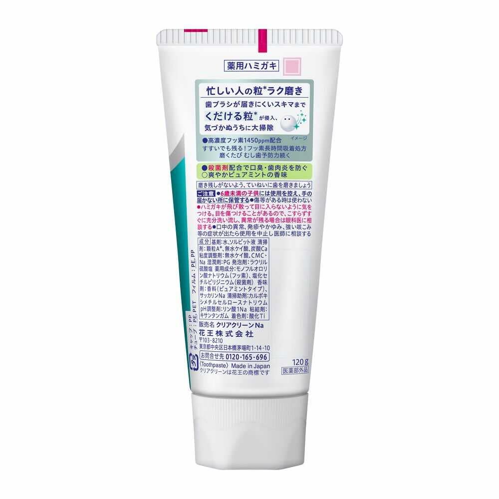 忙しい人の粒※ラク磨き 歯ブラシが届きにくいスキマまでくだける粒※が侵入、気づかぬうちに大掃除 ●高濃度フッ素1450ppm配合 すすいでも残る!フッ素長時間吸着処方 磨くたびむし歯予防力続く ●殺菌剤配合で口臭・歯肉炎を防ぐ ○爽やかピュアミントの香味