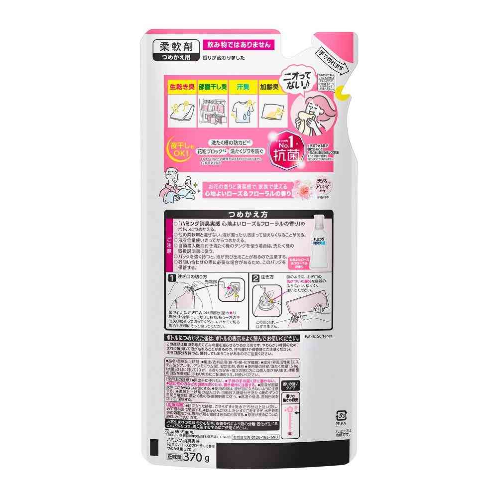 花王、ハミング、消臭、実感、柔軟剤、洗濯、ソフター、衣類、洗剤、芳香、柔らか、香り、ふわふわ、デオドラント、ローズ、フローラル、詰替、詰替え、詰め替え、つめかえ、レフィル