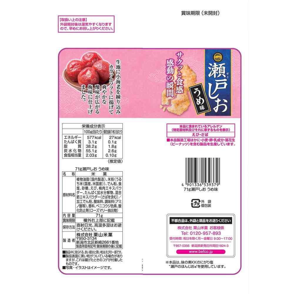 栗山米菓、瀬戸しお、うめ、梅、揚げせん、米菓、おせんべい、煎餅、おかし、お菓子、菓子、おやつ