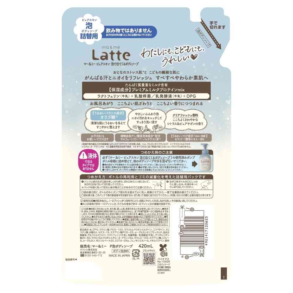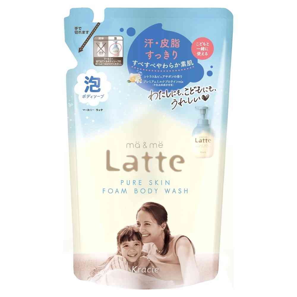 マー&ミー、ラッテ、ミルク、プロテイン、オリゴ糖、セラミド、酵母エキス、ママ、こども、うるおい、やさしいふんわり泡、アミノ酸系、汗、皮脂、すっきり、ニオイ、リフレッシュ、クリアフレッシュ香料、シトラス、ピュアサボン、泡タイプ、ボディソープ、せっけん、親子、全身洗浄料、詰め替え用