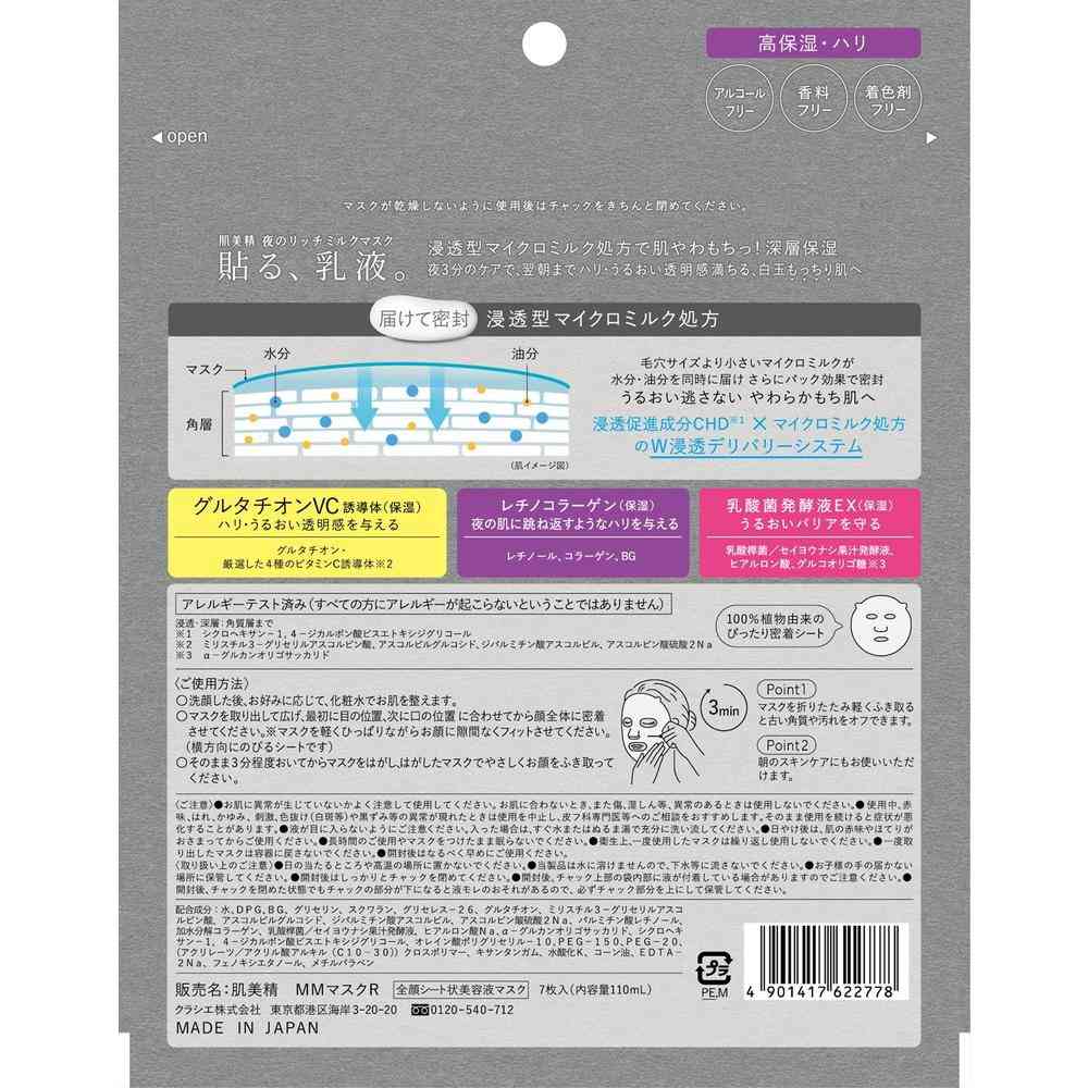 - > 肌美精 夜のリッチミルク マスク 7枚