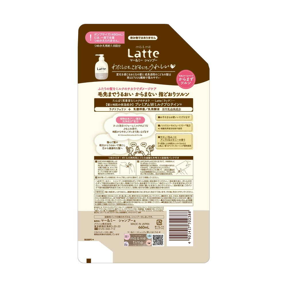 ●変化を感じるおとなの髪と、成長過程のこどもの髪に ●髪と地肌の保湿成分プレミアムWミルクプロテイン配合 ●毛先までうるおい、からまない、指どおりツルン ●植物由来アミノ酸系洗浄成分 ●フォームミルクのようなぷるふわ泡 ●地肌のニオイをおさえ心地よい香りがつづくブルーミング香料採用 ●やさしく包みこむアップル&ピオニーの香り ●ノンシリコン・サルフェートフリー ●こどもと一緒に使える